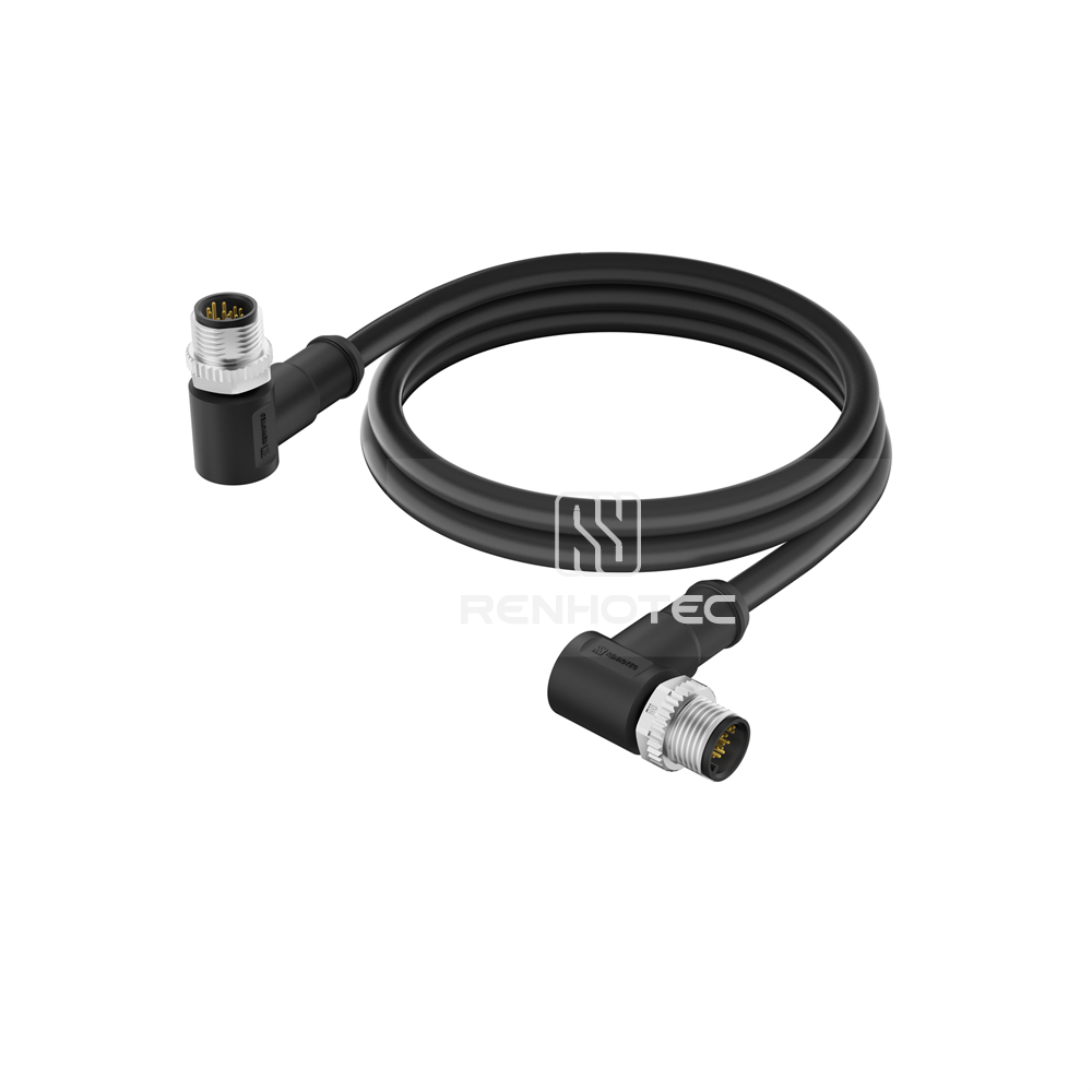 M12 Extension Cable A-Code 12 Pin Male to Male Angled - Shielded, PUR Jacket