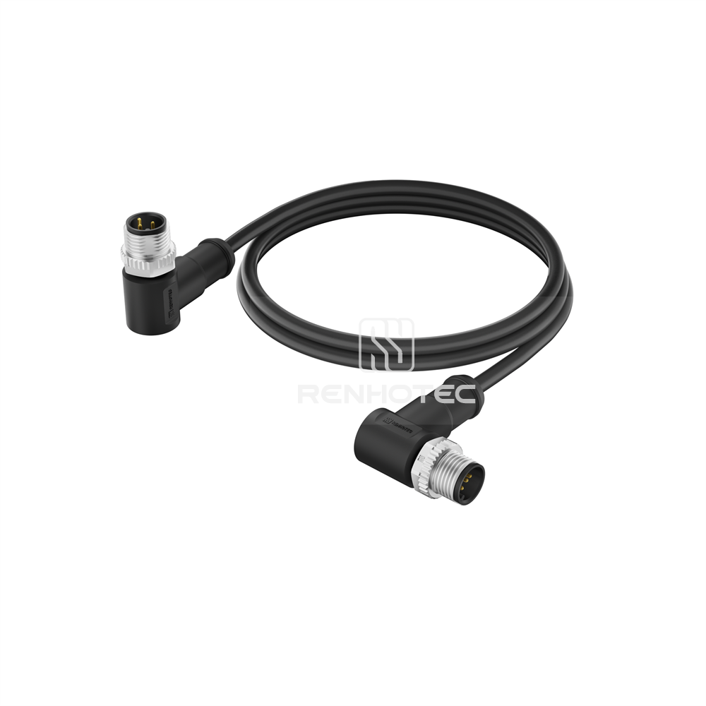 M12 Extension Cable A-Code 3 Pin Male to Male Angled - Shielded, PUR Jacket