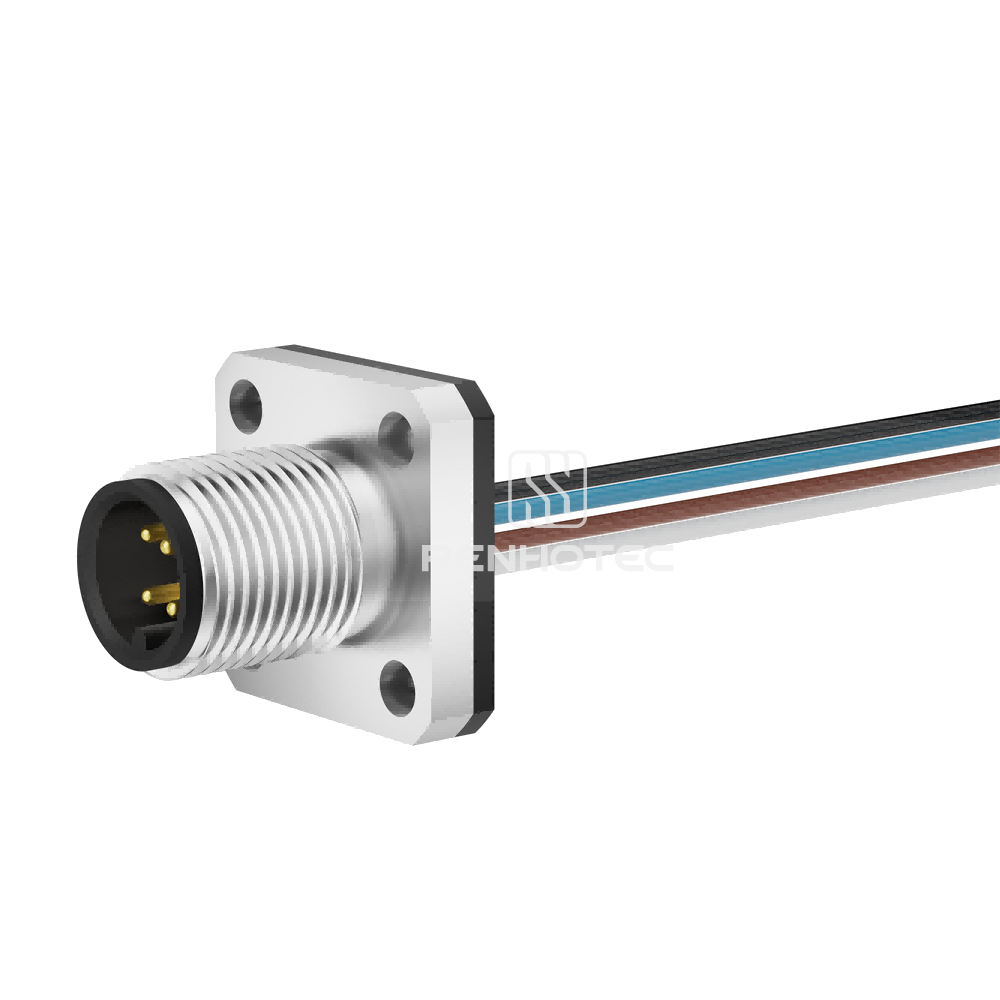 Products > Sensor Connector > M12 Series > M12 A Coded > M12 Panel Mount Receptacle A-Code 6 Pin Male Straight - Flange Mount, with Wires