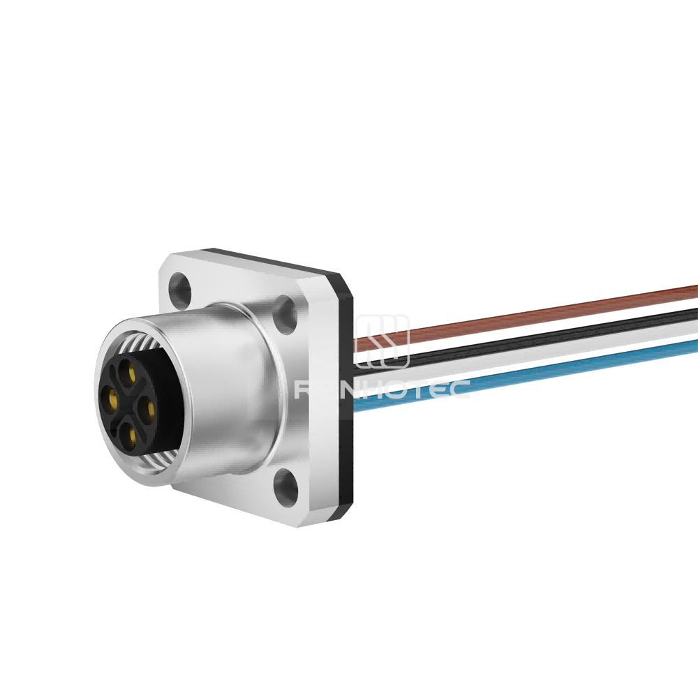 Products > Sensor Connector > M12 Series > M12 K Coded > M12 Power Pigtail Receptacle K-Code 2 Pin Female Straight - Flange Mount