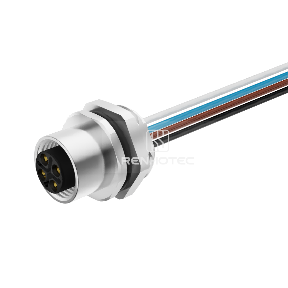 Products > Sensor Connector > M12 Series > M12 L Coded > M12 Power Pigtail Receptacle L-Code 4 Pin Female Straight - Rear Fastened