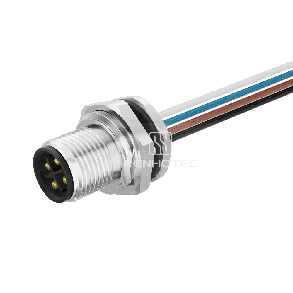 Products > Sensor Connector > M12 Series > M12 M Coded > M12 Power Pigtail Receptacle M-Code 2+PE Pin Male Straight - Front Fastened