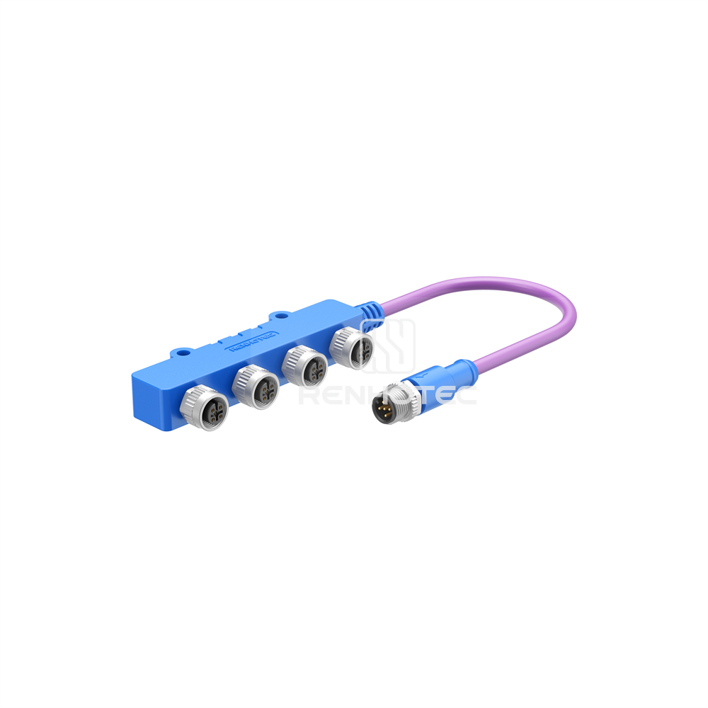 Products > Sensor Connector > M12 Series > M12 D Coded > M12 Power Tap T-Splitter Cable D-Code 4 Pin to 4-Way Female - Unshielded