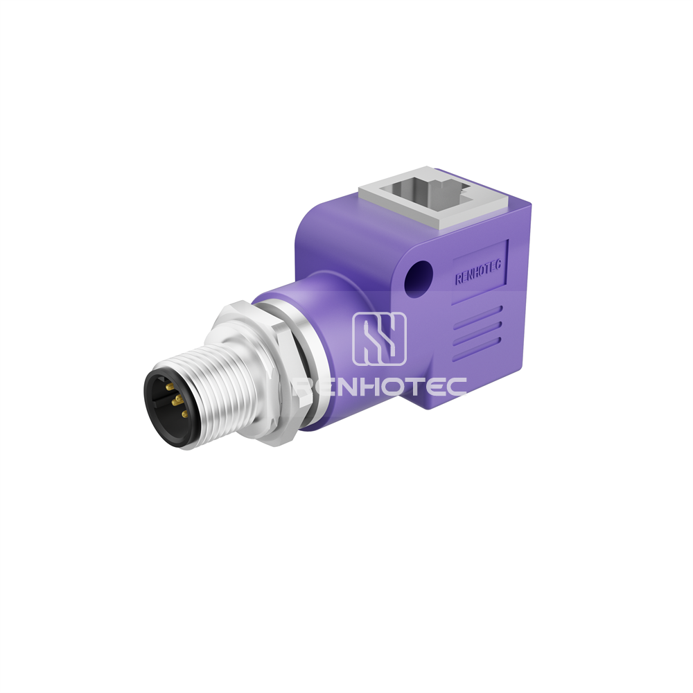 M12 to RJ45 Adapter D-Code 4 Pin Male - Shielded, Angled