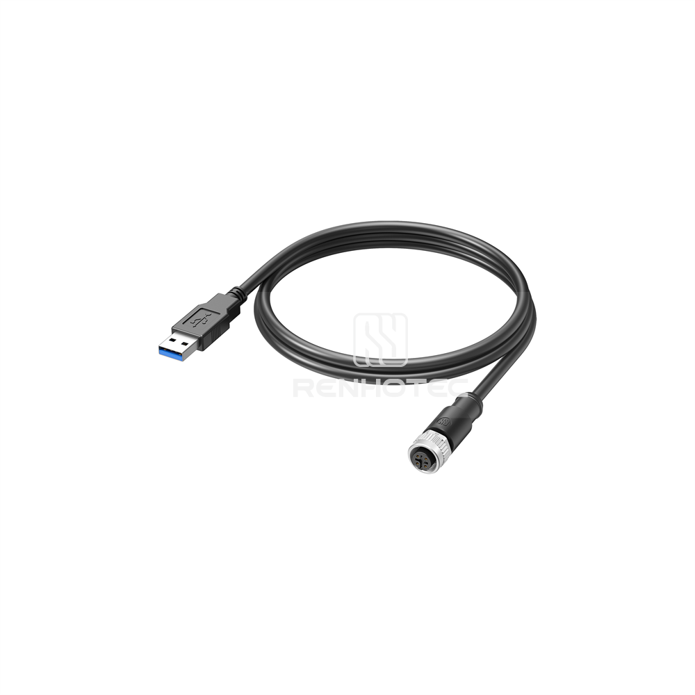 M12 to USB 2.0 Adapter Cable A-Code 4 Pin Female - Shielded, Straight, PUR JacketCable Material: