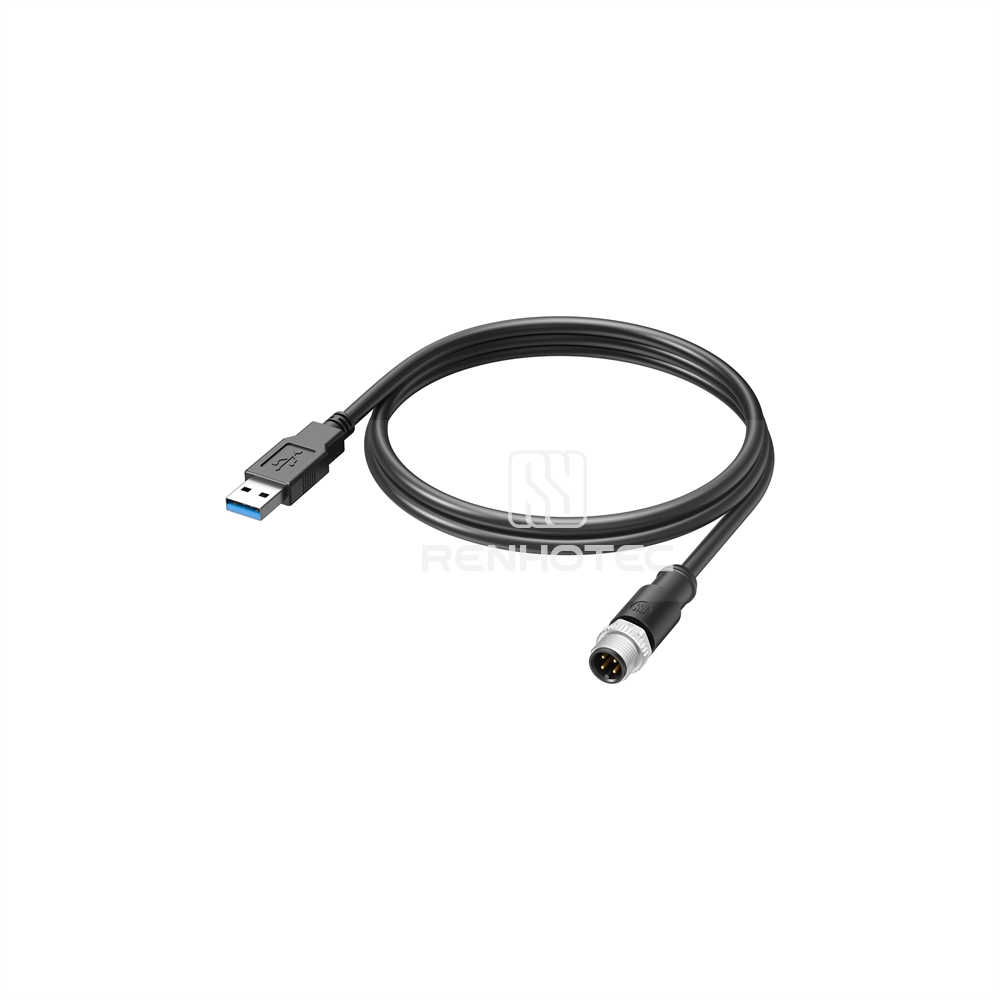 M12 to USB 2.0 Adapter Cable A-Code 4 Pin Male - Shielded, Straight, PUR JacketCable Material: